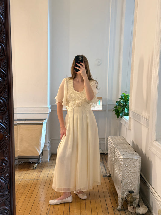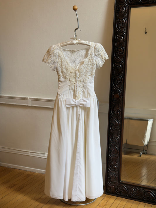 Vintage 80's Flutter Sleeve Bridal Dress with Rosette