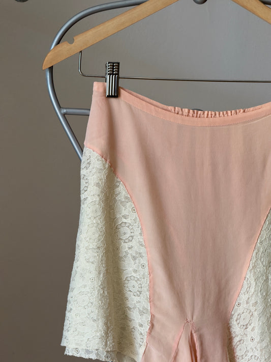 Vintage 30's Pink Crepe Tap Shorts with Cream Lace DetailingRegular price $95.00 USDRegular priceUnit price / per-