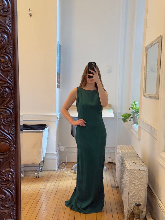Vintage 90's Emerald Green Evening Dress with Rosette DetailsRegular price $295.00 USDRegular priceUnit price / per-