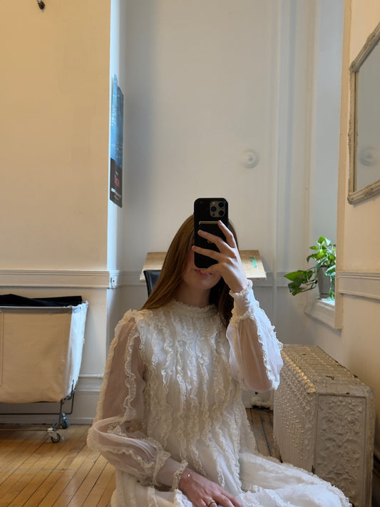 Vintage 60's Sheer Chiffon Wedding Dress with Lace RufflesRegular price $295.00 USDRegular priceUnit price / per