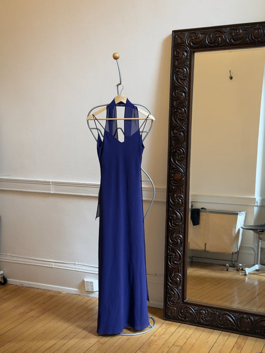Vintage 90's Purple/Blue Evening Dress with Neck Scarf