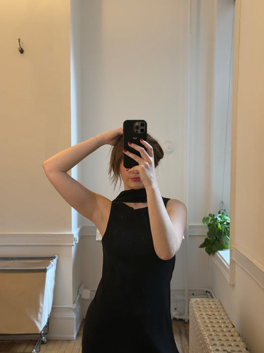 Vintage 90's Black Evening Dress with Neck Scarf