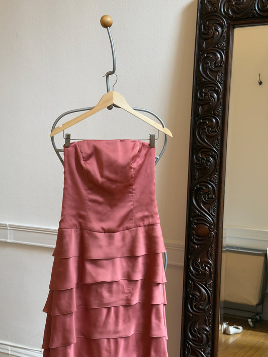 Vintage Pink Tiered Strapless Evening Dress