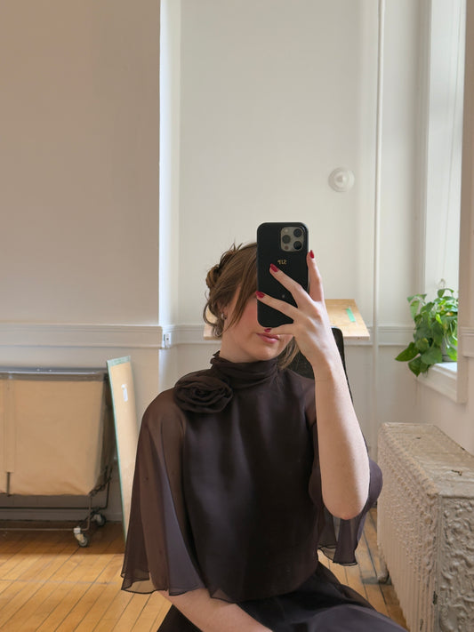 Vintage 70's Brown Tiered Chiffon Evening Dress