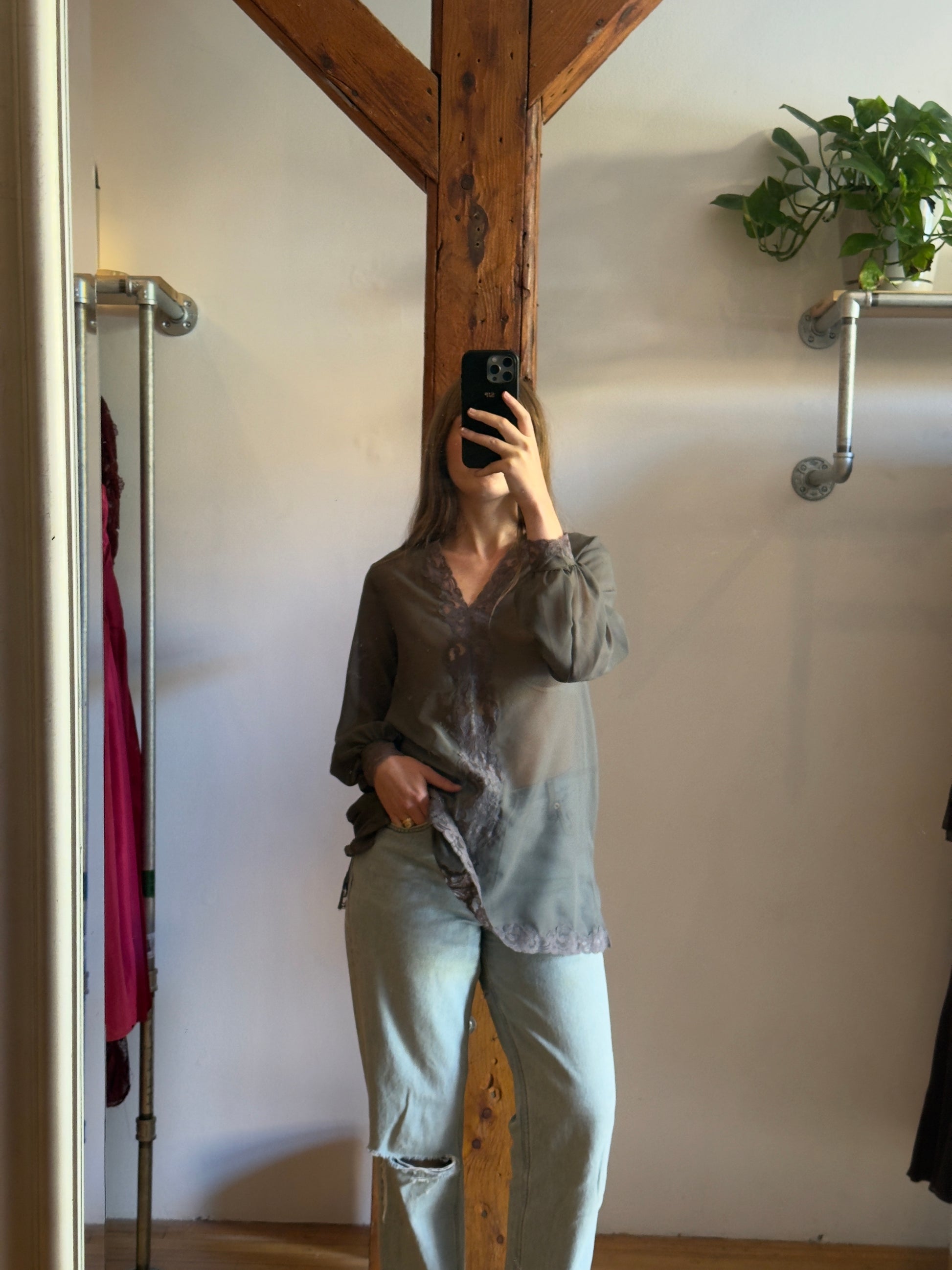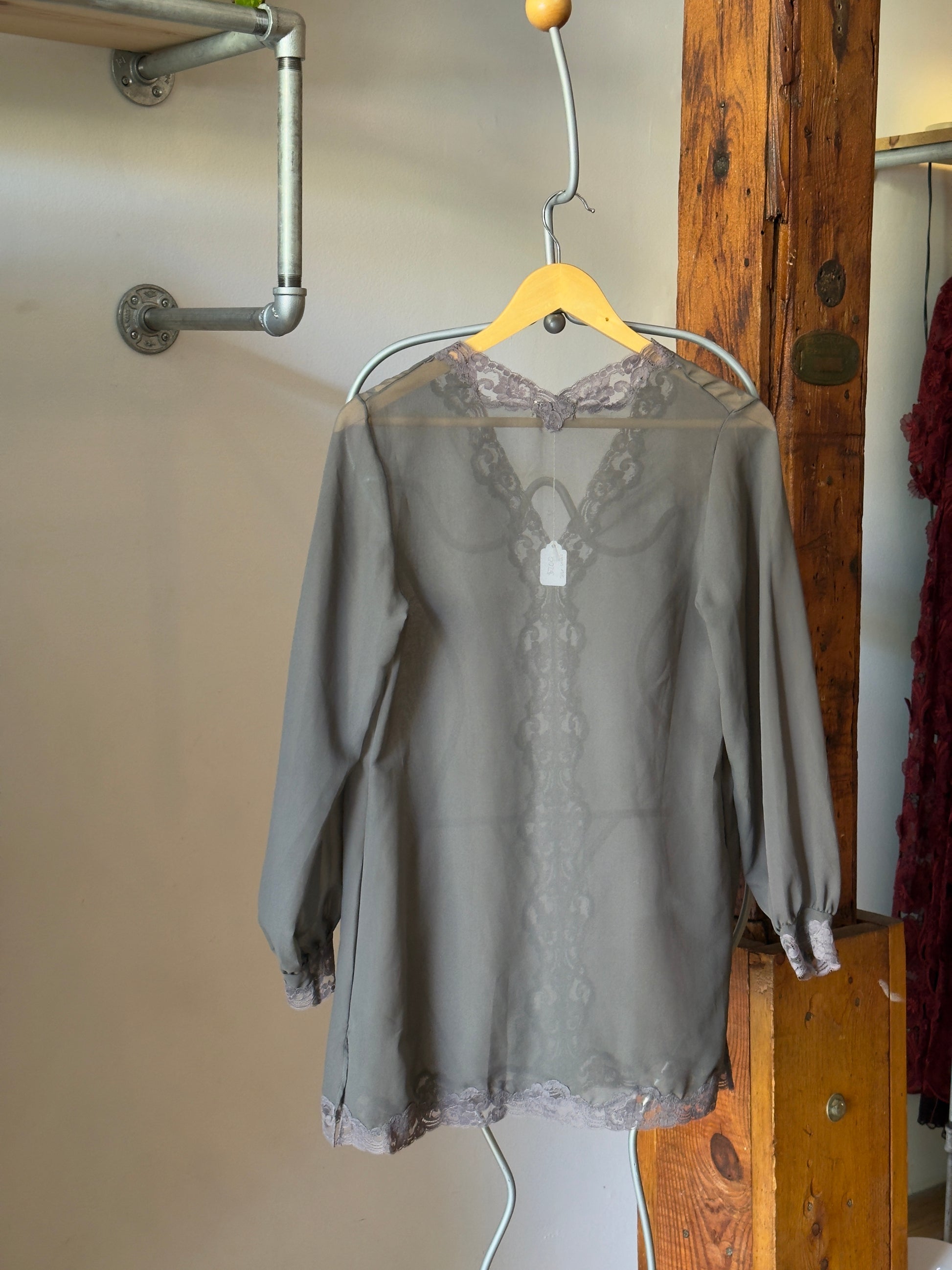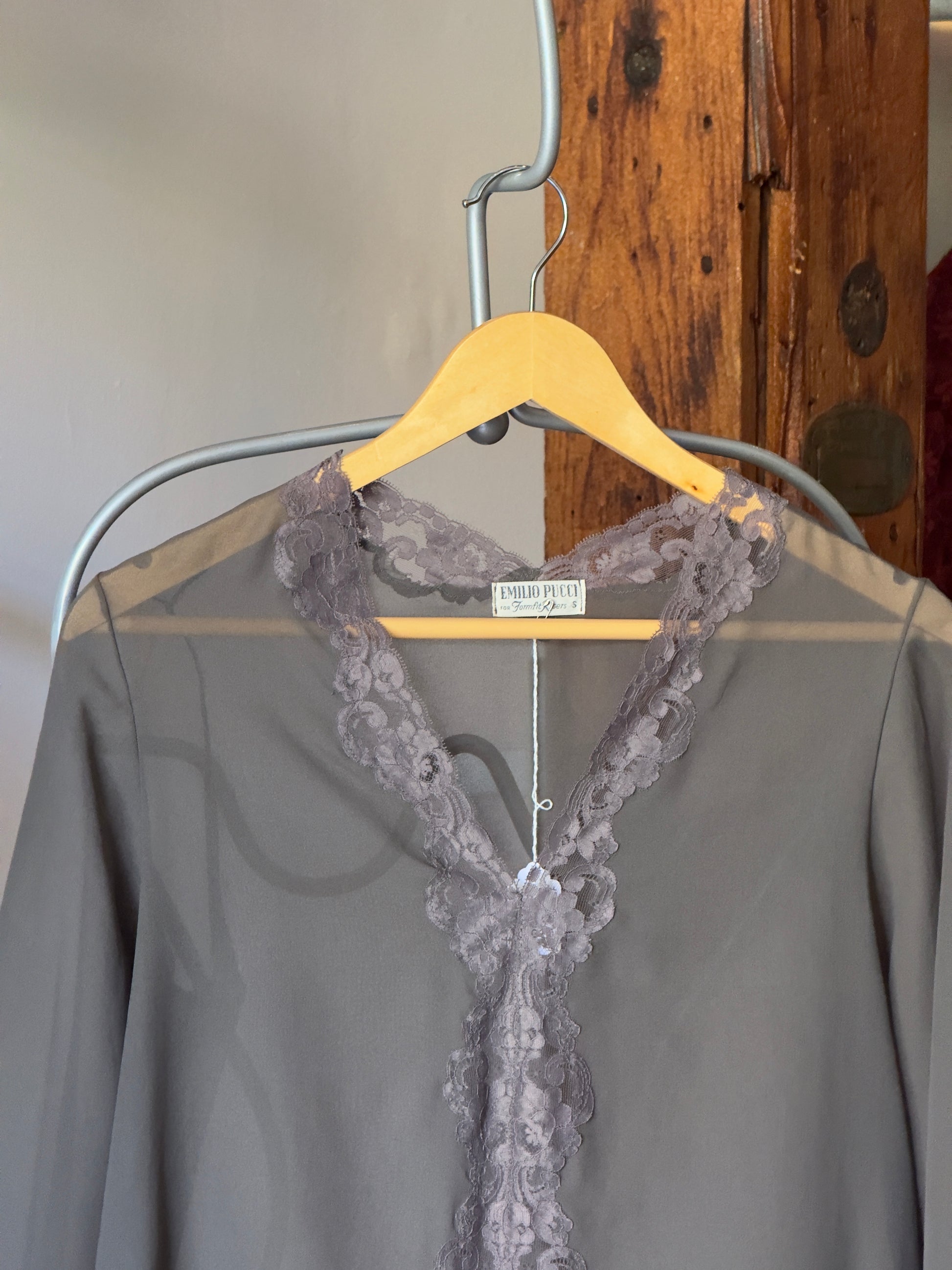 Vintage grey, sheer lingerie dress/top with lace trim. From the 1960 Emilio Pucci collaboration with lingerie designer, Formfit Rogers.