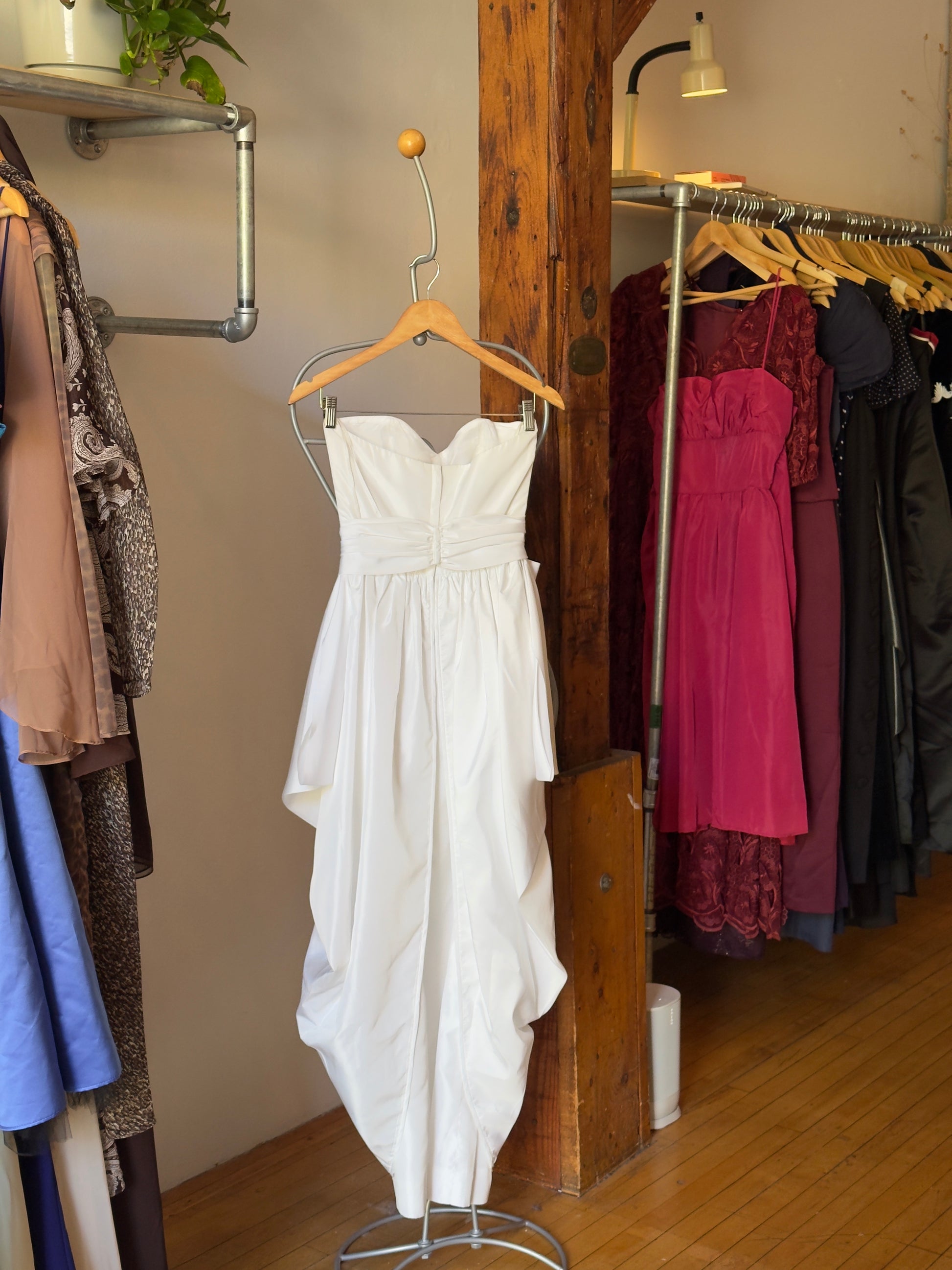 Vintage strapless bridal dress with the dramatic Victor Costa bow and cascading, voluminous skirt. Truly something special.